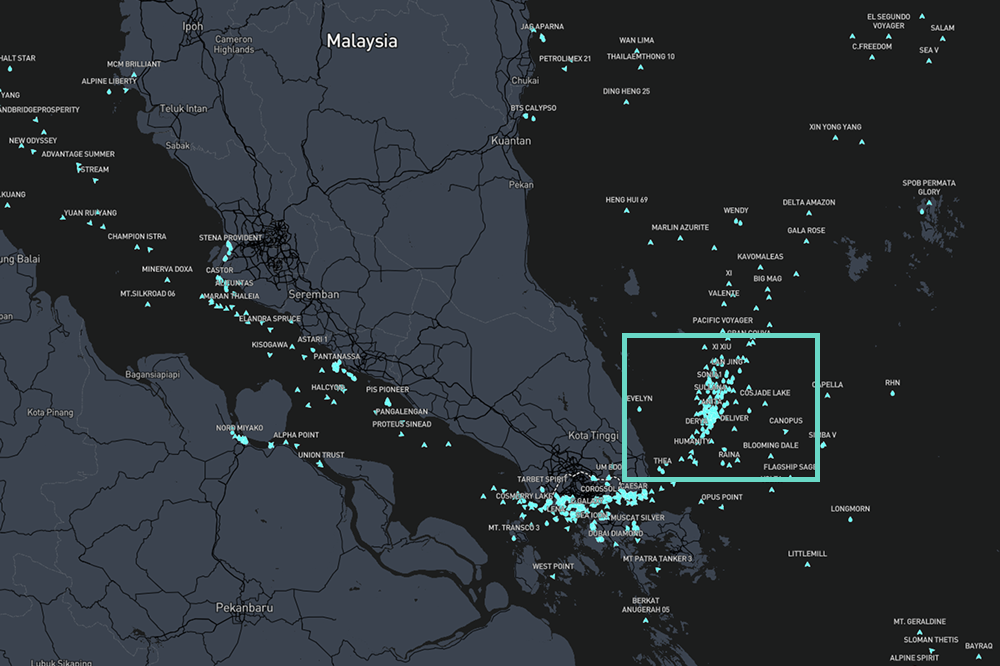 Several of the tankers broadcasting during the brief window were observed in the Malaysian EEZ, including known ship-to-ship (STS) transfer zones off the Riau Archipelago and Singapore Strait. Hotspots for Russian and Iranian oil flows. The Windward report highlights how these vessels operated in close proximity with minimal transparency before returning to dark modes.