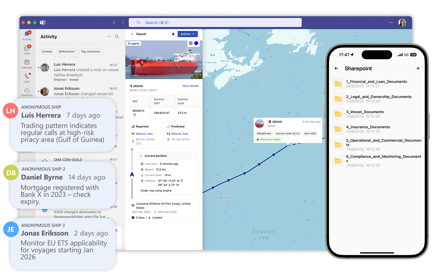 Receive notifications on vessels performance or team progress in Microsoft Teams or by email.